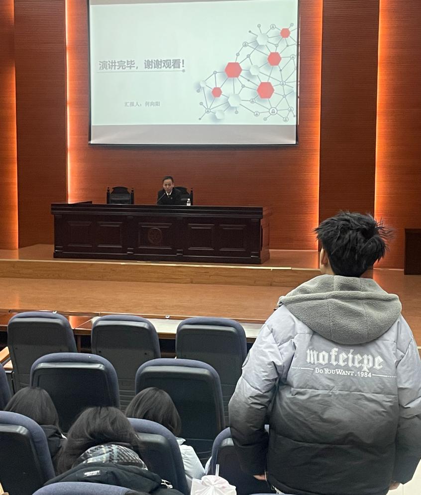宣讲内容由“弘扬宪法精神,坚定法治信仰”的重要性、“尊法、畏法、守法,做法治中国建设优秀人才”两部分组成。何向阳法官从专业角度向学生们阐述了宪法的生命与权威所在,指出宪法是国家的根本大法,是保障公民权利与规范国家权力的基石,与每个人的生活紧密相连。 同时,何向阳法官从自身多年办案经验入手,为同学们分享了涉及大学生危险驾驶、诈骗、强奸、盗窃和帮助信息网络犯罪等典型案件,由这些引人深思且贴近学生生活的真实案例提醒同学们要以案为鉴,立志高远,踏实肯干,努力成长为有法治信仰的人!