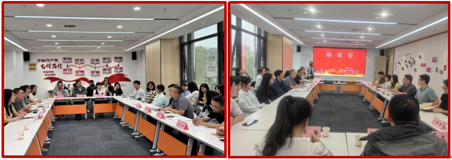 最后,研学组一行和正阳街道人大工委及朝阳社区居委会举行基层人大代表履职工作座谈会。正阳路街道人大工委主任寇振宇全面介绍了正阳路街道人大代表中心联络站的运行情况与实践成果,各驻站代表就履职情况做了交流发言。驻站人大代表、社区党支部书记张玲详细说明了社区服务中心、法治文化广场、居民议事厅等特色工作开展情况,并结合社区工作实际,就人大代表在基层治理中的民意征集、纠纷化解、普法宣传等工作进行了介绍。