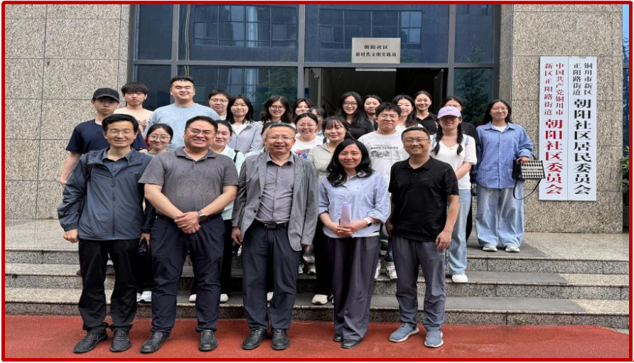 当天下午,师生一行到铜川市耀州区正阳路街道朝阳社区委员会调研座谈。社区工作人员介绍了社区以党组织网格图为治理基础,构建集群众办事、矛盾调解、入户宣传于一体的基层服务体系,推行三心服务机制(放心户、关心户、连心户),并分别针对青少年与中老年群体开展关爱活动及健康服务。在基层民主与法治建设中,社区通过立法意见征集、民主议事法治讲座等方式开展普法宣传提升社区居民法治意识。暖心服务站设置家居便利贴心上门服务”“图书借阅爱心交换等便民项目,促进邻里互助。矛盾调解室创新司法联动模式,构建预防调解化解三级纠纷处理机制,实现矛盾就地解决。调研中,师生直观感受到了朝阳社区的精细化服务与规范化管理的生动实践。