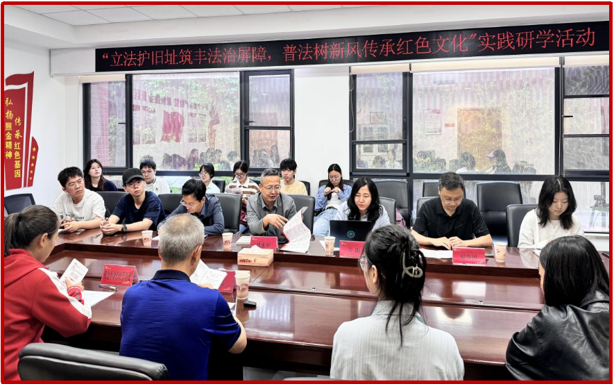 随后,研学团队和铜川市人大常委会法工委、照金景区管理委员会举行《条例》实施座谈《立法学》团队负责人代水平介绍此次研学的目的,旨在通过实地考察增强师生对地方性法规实施的直观感受,并特别说明团队根据条例内容精心编撰顺口溜便于人们识记和了解《条例》内容与会人员对这一创新性法制宣传形式表示高度认可铜川市人大常委会法工委办公室韩院主任介绍了《条例》的制定过程,并详细解读了重点内容及实施状况。照金革命旧址管理处宣教科负责人创新宣传形式、分类保护措施、红色资源整合、修缮维护工作及下一步规划等方面的工作作了讲解和交流。与会人员还就条例执行中的经费保障机制、基层管理体制协同等问题展开深入交流。
