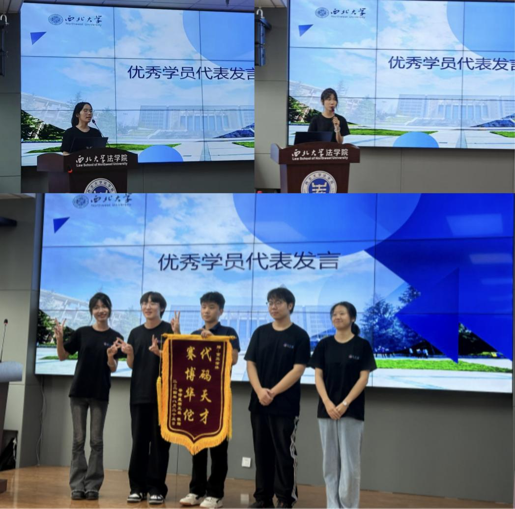 训练营学员代表张吴轩和尤彤宇分享了司法AI的学习经历和感受,以及在训练营中的收获和成长,均表达了对学校、学院和实验室各位老师的感谢。