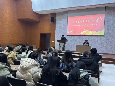 陈露老师为同学们作了题为《当马克思主义来到中国———新时代的青年人如何理解“两个结合”》的专题报告。首先,陈老师以鲜活生动的案例帮助同学们理解马克思主义是中国革命和中国社会发展的必然选择;其次,陈露老师用深入浅出的语言带领同学们深刻领悟“调查实践”与“文化自信”的重要性,并强调中国传统文化是中国与马克思主义紧密结合的关键,是中国五千年文明代代相传的关键。他指出“两个结合”的前提是彼此契合,结果是互相成就,并表示“两个结合”打开了创新空间,筑牢了道路根基,巩固了文化主体性;最后,陈露老师鼓励青年骨干们要理直气壮地挖掘和结合中华优秀传统文化,真正实现马克思主义的中国化和时代化,并强调要将理论知识付诸实践,学以致用,继续推进实践基础上的理论创新。