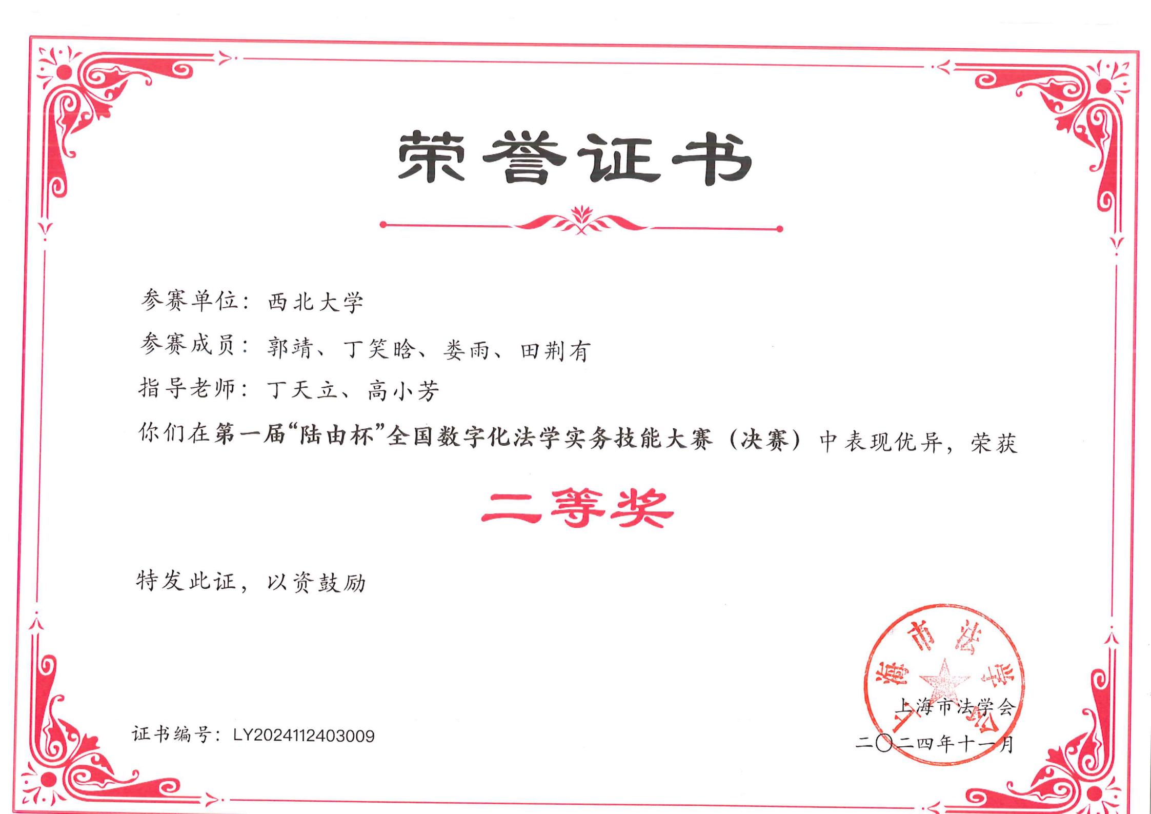 2024年11月23日至24日,第一届“陆由杯”全国数字化法学实务技能大赛总决赛成功举办。总决赛中,来自全国各高校的41支优秀队伍齐聚上海财经大学,经过线上系统竞赛和现场答辩两个环节精彩绝伦的较量,最终决出特等奖8支队伍、一等奖9支队伍和二等奖24支队伍。最终,伟德官网研究生参赛队伍荣获二等奖。