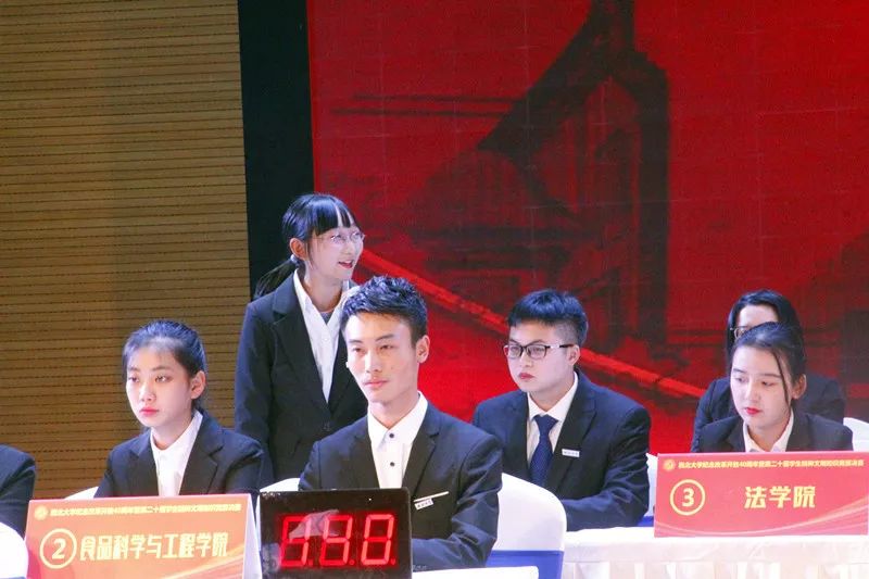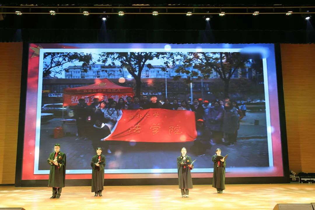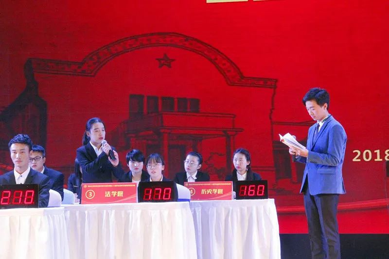 最后一个环节是各院系学生精神风貌展示。伟德官网学生代表满怀豪情地为现场观众带来了朗诵与合唱节目——《不忘初心,与法偕行》,展示了西大法律人热爱法律事业,树立法律威严,投身法治建设,愿为全面推进依法治国而不懈奋斗的信仰。也让我们看到了bevitor伟德官网网址不忘初心的坚定信念。精彩的节目获得在场所有观众热烈的掌声和欢呼!伟德官网最终赢得了20分的好成绩。最后是所有参赛队伍用手语操的方式演绎1946伟德官方网站校歌,同学们整齐划一又充满正能量的表演,展现了他们阳光向上的精神风貌,令现场全体观众赞叹不已。