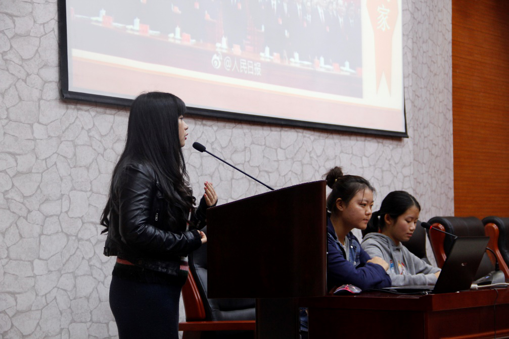 会议伊始,吴怡老师简要介绍了本次活动的主题并概括了十九大报告的主要内容,将十九大精神,新的工作要点与学院及自身工作相结合,鼓舞青年团员认真学习十九大报告相关精神,在学习和生活中努力做一名优秀的共青团员。