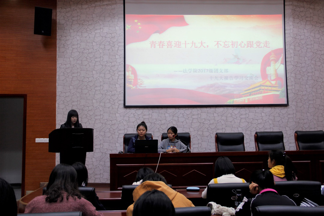 2017年10月24日,bevitor伟德官网网址2017级团支部"十九大报告学习交流会"活动在知识产权报告厅开展,本次学习活动由法学班团支书主持, 本科生辅导员吴怡老师及2017级全体新生参加了此次活动。