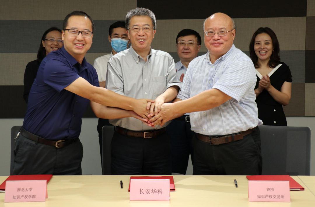 8月7日,伟德官网与陕西长安华科发展股份有限公司、香港知识产权交易所三方战略合作签约仪式暨知识产权运营研讨会在普汇中金国际中心举行。陕西投资集团党委委员、董事、副总经理龙兴元、省知识产权局副局长李迎波、香港知识产权交易所主席吴高林、长安华科董事长袁京连、陕西创业学院院长徐娟、金杜律师事务所知识产权部合伙人瞿淼、伟德官网院长王思锋、副院长邱洪华、成剑及省金融局等相关部门负责同志出席会议。会议由长安华科总经理赵凯辉主持。
