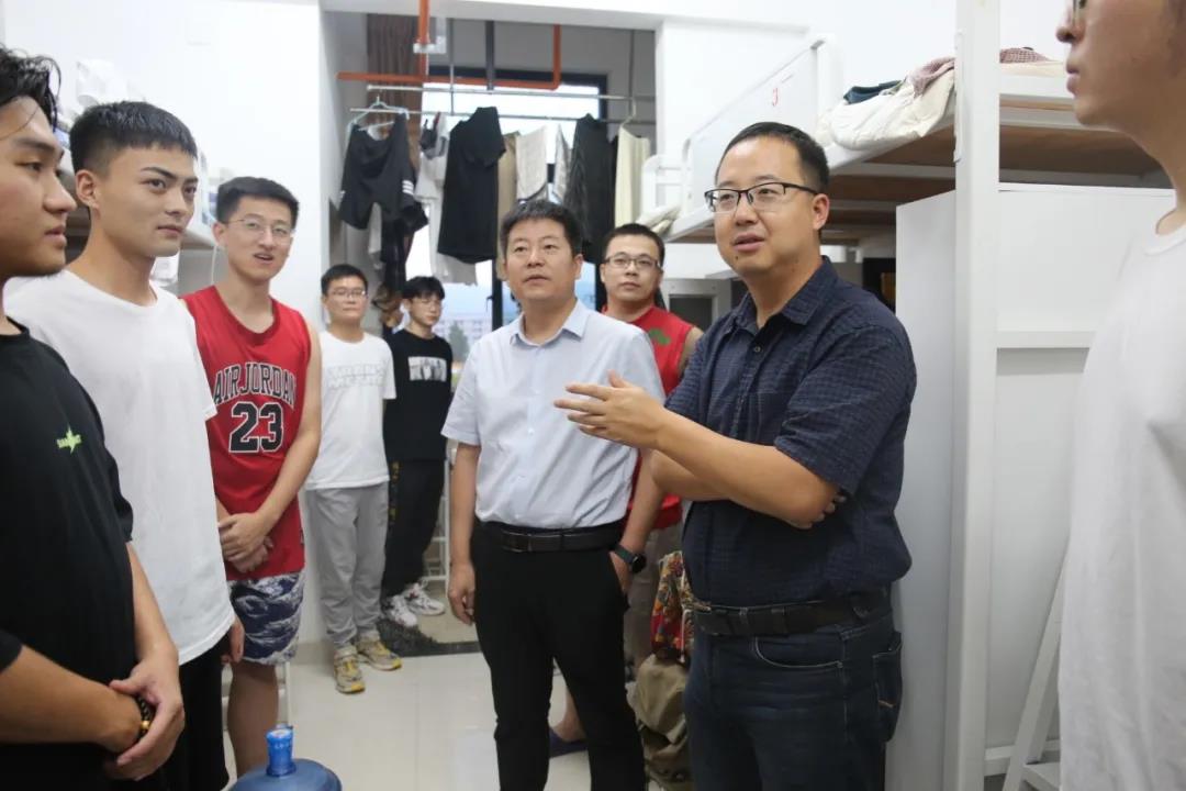 9月7日晚上7点,以bevitor伟德官网网址院长王思锋老师、党委书记李一凡老师、副院长郑辉老师、代水平老师、邱洪华老师、团委书记陈竟老师等为代表的学院领导在新生班长的陪同下前往博硕楼看望20级新生。