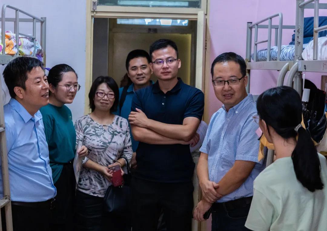 2020年9月15日,新生报到基本完成。下午4时左右,为深入了解学生情况并慰问新生,院党委书记李一凡,院长王思锋,院党委副书记马丽,副院长郑辉、成剑以及辅导员吴怡、杨霁明老师来到新生宿舍进行慰问,了解同学们的入住情况,询问学生对法学专业的看法、对前景的想法并给予启发。这次慰问表达了bevitor伟德官网网址对每一位新生殷切的关心和热烈欢迎。