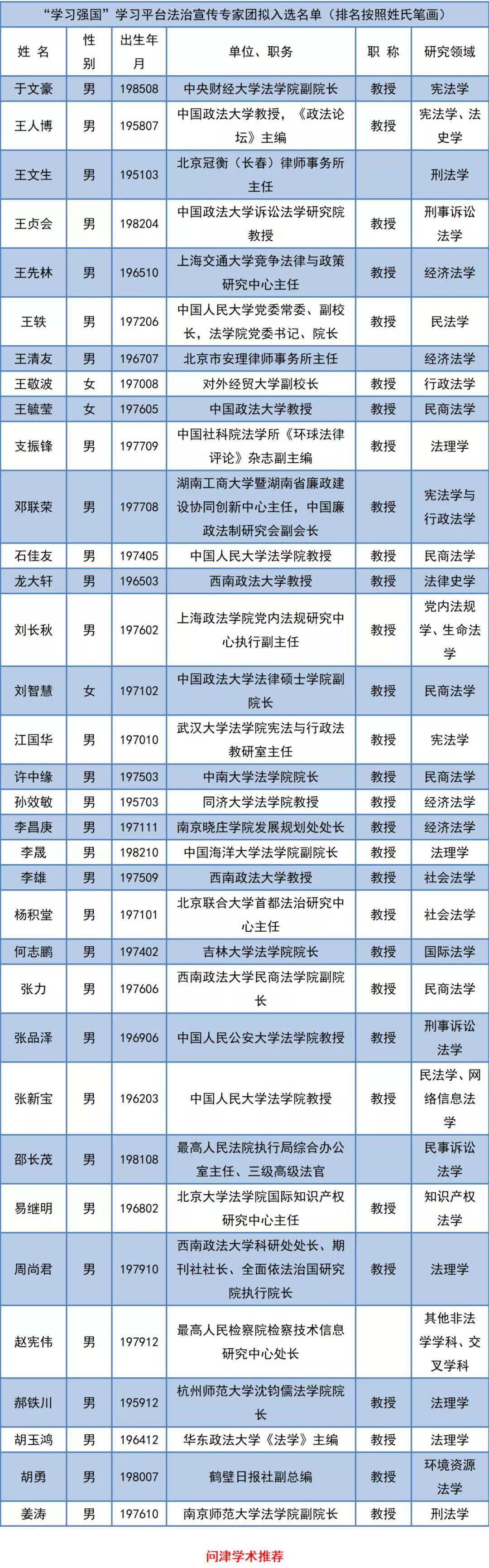 由中央宣传部“学习强国”学习平台和中国法学会《民主与法制》社共同发起并遴选产生的“学习强国”学习平台法治宣传专家团名单于日前公布。通过网络公开征集,经初审、复审及政审环节,共遴选出符合条件的专家56人。伟德官网支振锋、潘怀平两位教授入选专家团成员。