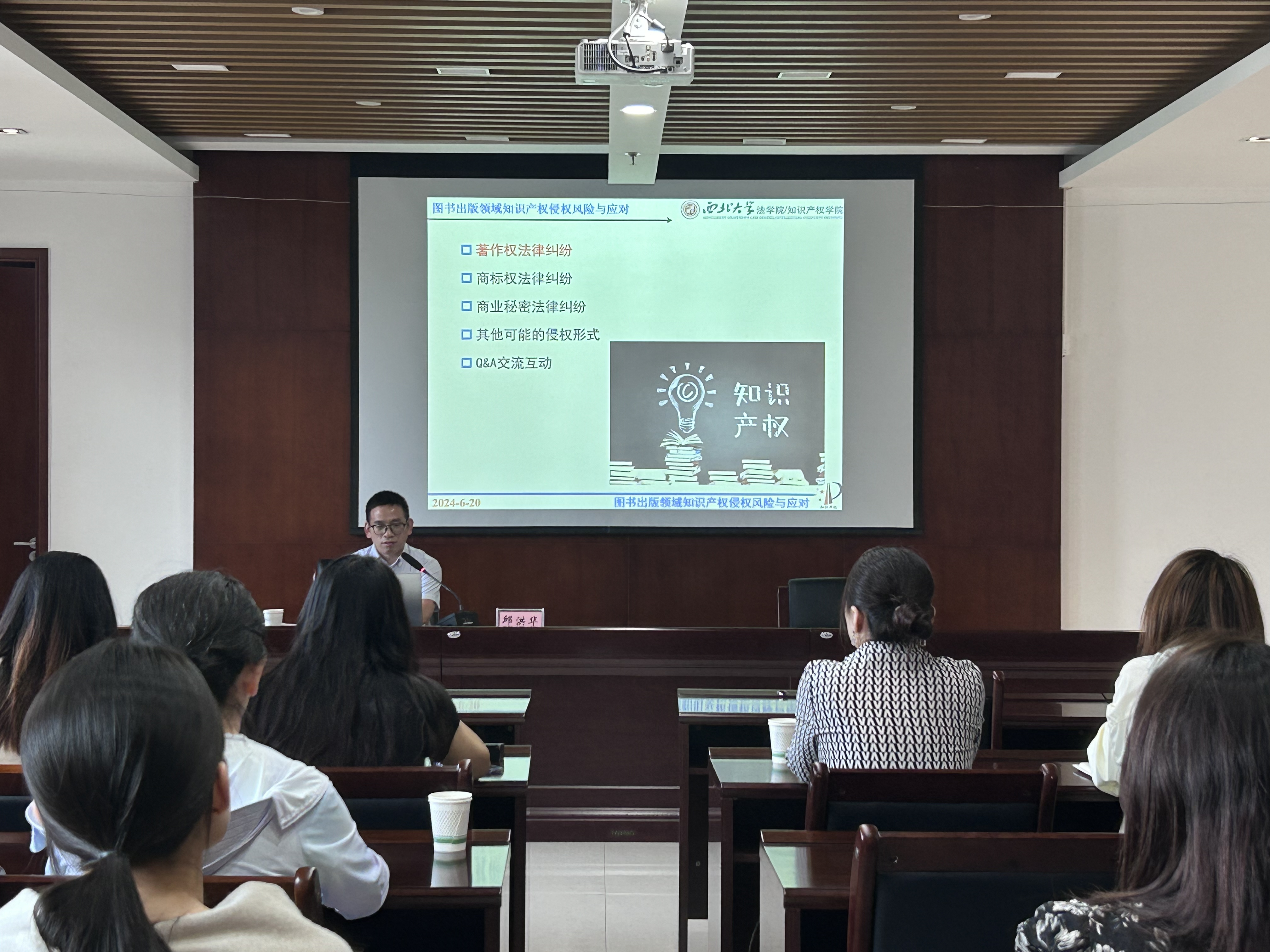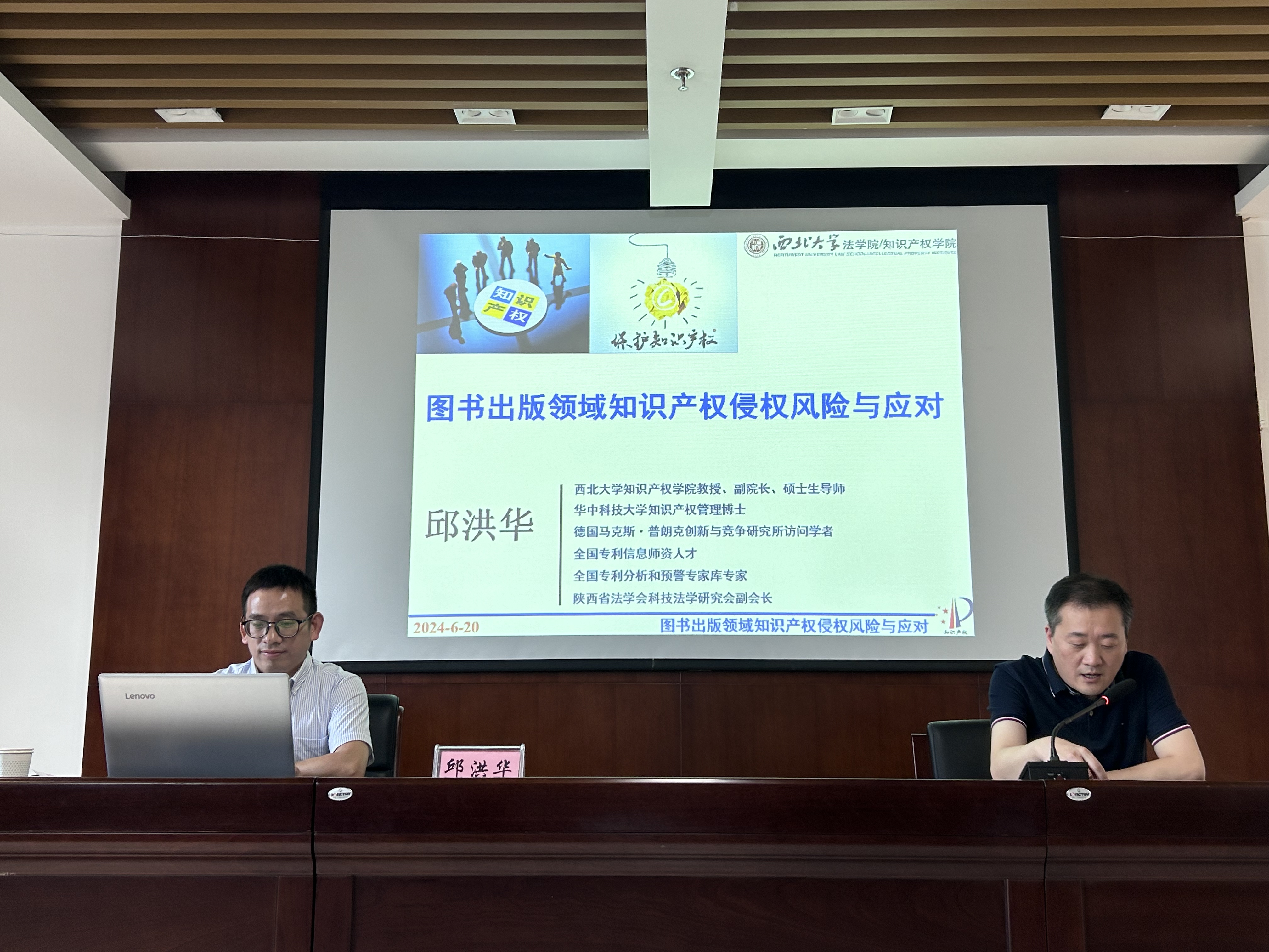 2024年6月20日,伟德官网邱洪华教授以“图书出版领域知识产权侵权风险与应对”为题,为陕西省科学技术出版社做专题报告。陕西科学技术出版社李珑副主编主持了专题讲座,出版社全体编校专家老师参加了本次讲座并与邱洪华教授进行了积极的互动交流。