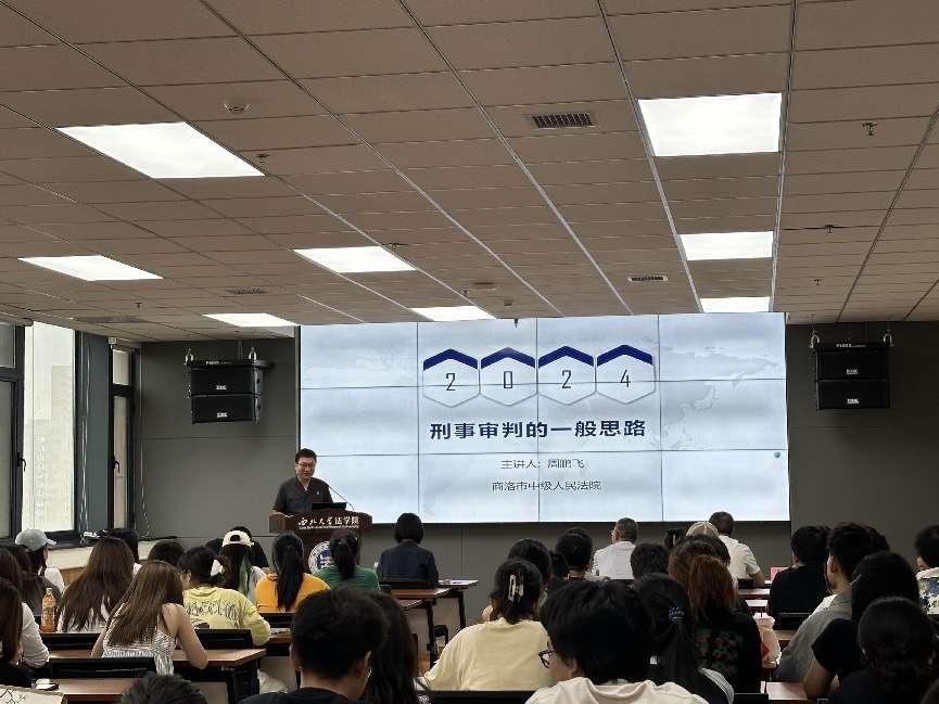 随后,商洛市中级人民法院刑二庭副庭长周鹏飞法官开始讲授“刑事审判的一般思路”。周法官从“强化四种意识”“办好三类案件”“抓住两个环节”“达成一个目标”四个维度,结合他办理的真实案件,深入浅出地讲解了刑事审判的一般思路。课程共分四个部分:第一部分,通过具体案例的审判实践,阐释刑事审判强化政治敏感意识、社会风险意识、化解矛盾意识、裁判身份意识的实践经验;第二部分,通过具体案例的审判实践,阐释刑事审判中办好重大敏感案件、新类型案件、常见多发型案件需要考虑的问题和具体的实践的方式方法;第三部分,通过具体案例的审判实践,从开好庭审、写好判决两个方面阐释刑事审判应当抓好的两个环节问题;第四部分,通过具体案例的审判实践,从坚持严格司法,反对机械司法、将专业判断与常识判断相结合、重视发挥裁判的社会引领功能三个方面阐释刑事审判应当达成的目标。周法官最后寄语同学们,要有“为天地立心、为生民立命”的胸怀,坚持“心上磨、事上练、致良知”的行为准则,以“无我”的心态,做“利他”之事,努力让公平正义之光洒满人间。课程讲授结束之后,周法官与同学们互动交流,耐心回答了同学们的提问。