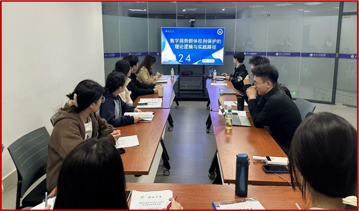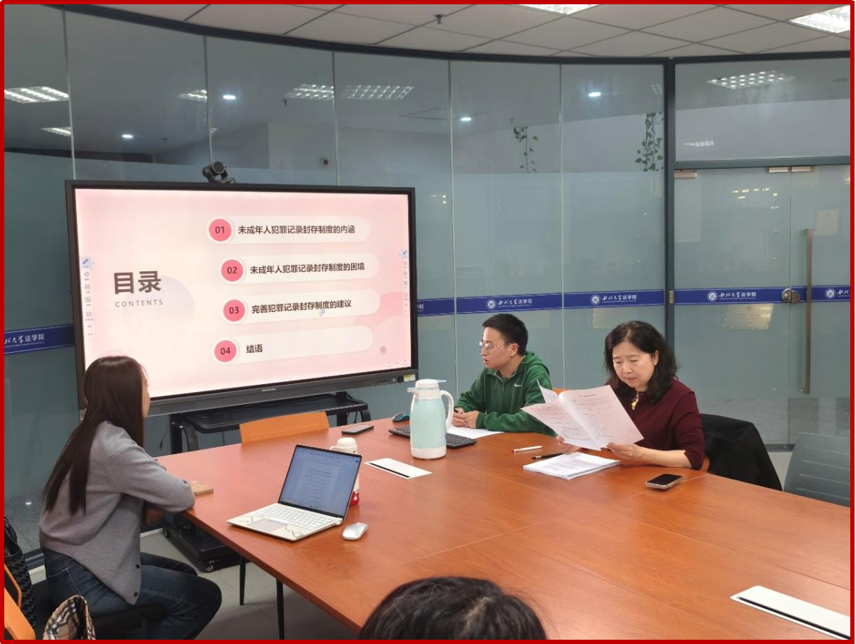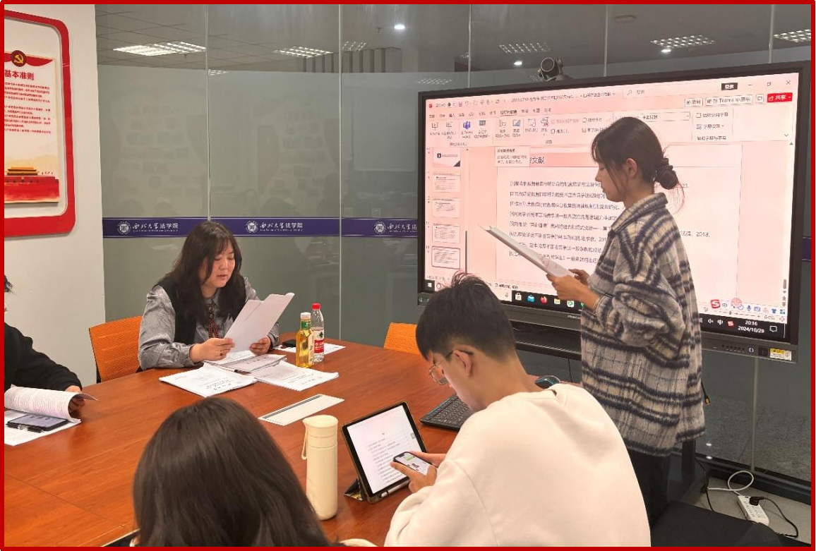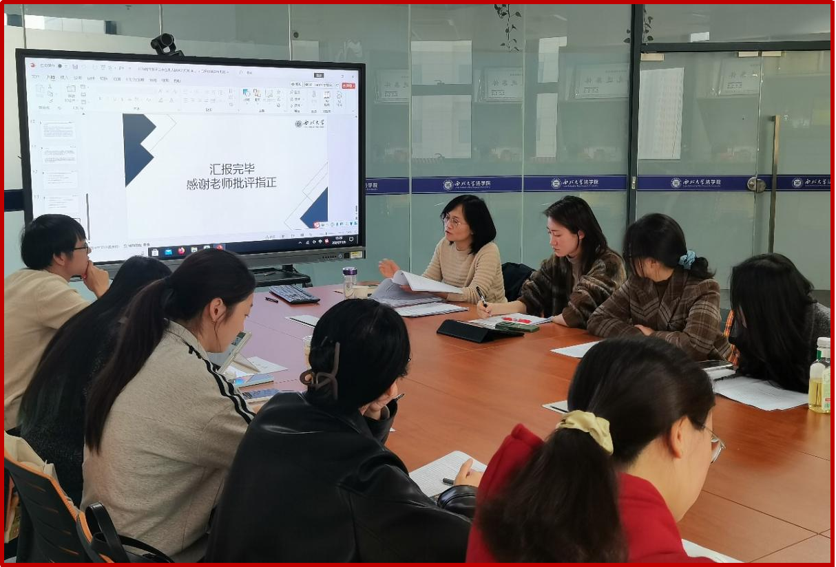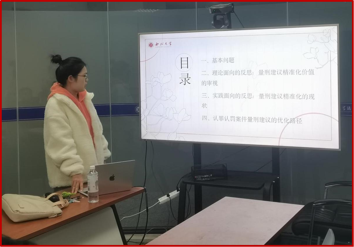 本次学术活动月共计开展了21场研究生学术报告,参加人数近300人,主题涉及民商法、刑法、诉讼法,知识产权法等多个方面。每位同学就自己感兴趣的学术热点问题撰写论文,并进行10分钟左右的汇报,其他同学展开讨论,最后由老师进行点评。参加点评的老师有赵海怡教授、尉琳副教授、姜昕副教授、崔玲玲副教授、龙井瑢副教授、涂慧副教授、田海副教授、杜路副教授、傅强老师、高杨老师、谢寄博老师、吕康宁老师、葛恒浩老师、黄菁茹老师、李国华老师、苟震老师、方婷老师、刘桢老师、侯欢老师、丁天立老师、任洋老师等。老师们从论文选题、体例结构、行文逻辑、论证内容等方面入手,作了全面具体的分析和客观的评价,既肯定了同学们的优点,也指出了存在的问题,并针对性地提出了改进建议。