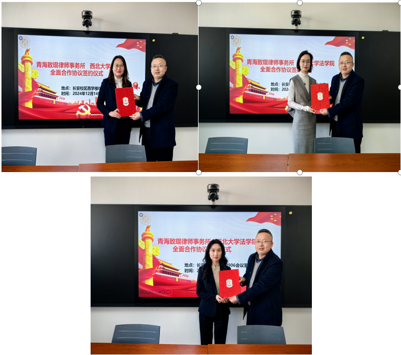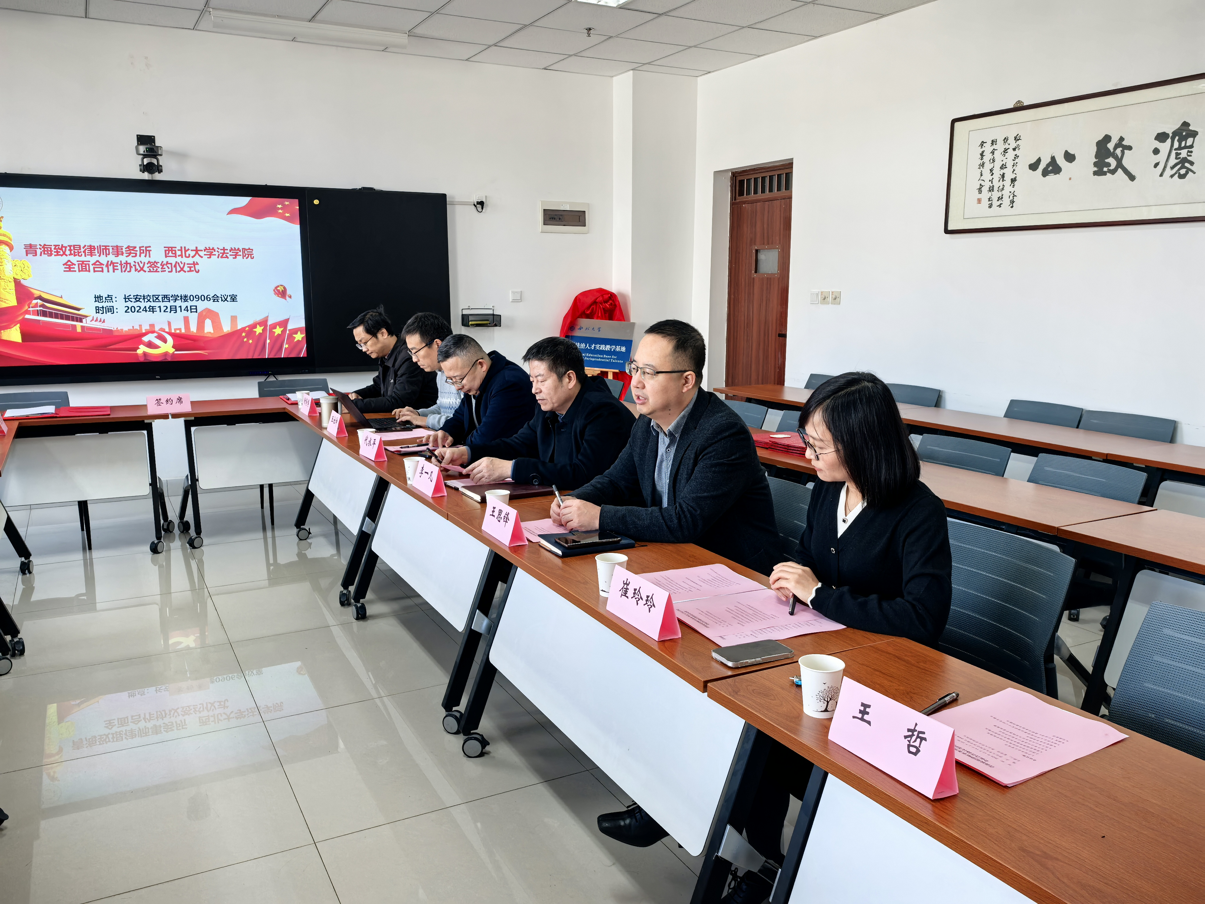 2024年12月14日上午,伟德官网与青海致琨律师事务所共建法律教学实践基地签约暨揭牌仪式在长安校区西学楼举行。青海致琨律师事务所主任祁岩,事务所高级合伙人、党支部书记梁艳玲,事务所高级合伙人张倩、禅静安,事务所合伙人、投资并购中心、并购重组法律服务部负责人杨威,事务所争议解决法律服务部负责人陈梅,事务所破产与清算法律服务中心负责人宋璐璐和律师宋紫薇,伟德官网党委书记李一凡,院长王思锋,副院长代水平、崔玲玲,1946伟德官方网站环境资源治理研究中心主任王社坤,学院办公室主任王哲,学院宪法学与行政法学教研部教师谢寄博参加签约暨揭牌仪式。