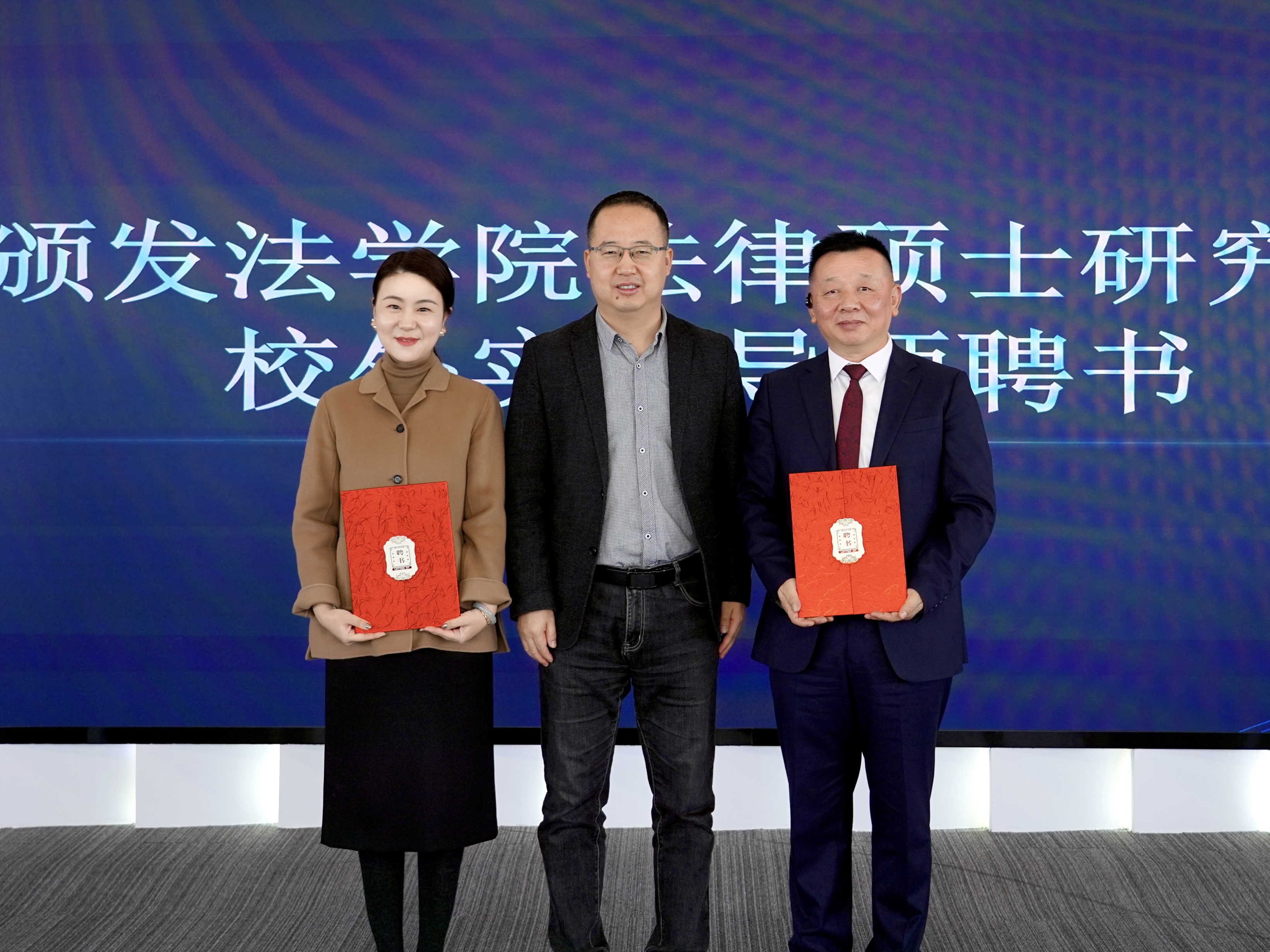 随后,王思锋院长为刘洁主任、桂立奎主任颁发了法律硕士研究生校外实务导师聘任证书;崔玲玲副院长为程杰律师颁发了学院《创新创业教育实践(含法律诊所)》授课教师聘书及纪念章。