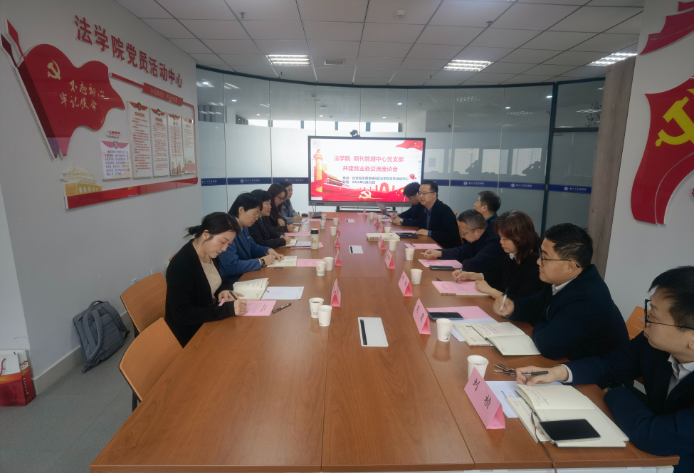 2025年2月28日上午,bevitor伟德官网网址与期刊管理中心党支部共建暨业务交流座谈会在长安校区西学楼9楼会议室召开。期刊管理中心主任卫玲,副主任陈理娟,编辑陈丽、王芳、樊丹丹,bevitor伟德官网网址党委书记李一凡,院长王思锋,副院长代水平、理论法学教研部主任潘怀平、教师代表卞辉、焦琰、苟震、刘桢等老师共同参加本次座谈会,座谈会由bevitor伟德官网网址院长王思锋主持。