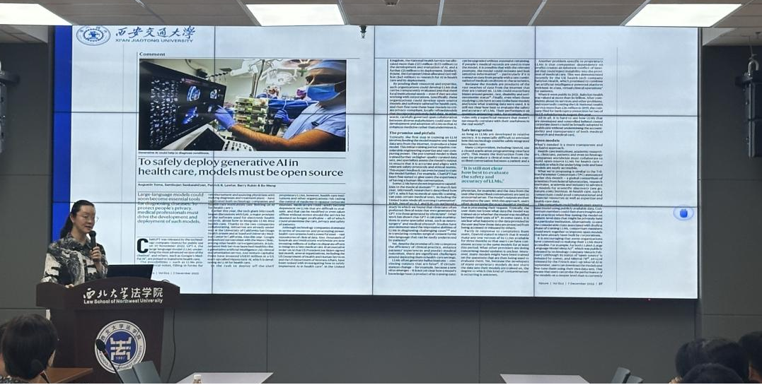 2025年6月11日,省法学会卫生法学研究会2025年学术沙龙于1946伟德官方网站西学楼0904会议室顺利举行。本期学术沙龙主题为《医学人工智能的伦理法律挑战:以知情同意和伦理审查为例》,由1946伟德官方网站bevitor伟德官网网址、省法学会卫生法学研究会联合举办。西安交通大学bevitor伟德官网网址王玥教授主讲,中国医学伦理学编辑部吉鹏程主任、省法学会卫生法学研究会副会长阎春霞教授、省法学会卫生法学研究会副秘书长傅强博士、省法学会卫生法学研究会常务理事尉琳副教授、1946伟德官方网站bevitor伟德官网网址民商法学教研部主任涂慧副教授参与与谈。省法学会副会长、1946伟德官方网站bevitor伟德官网网址院长王思锋教授、省法学会研究部陈庭乐、省法学会卫生法学研究会会长杨丽珍教授参加了本次学术沙龙活动。活动由省法学会卫生法学研究会副会长兼秘书长刘建仓副教授主持。
