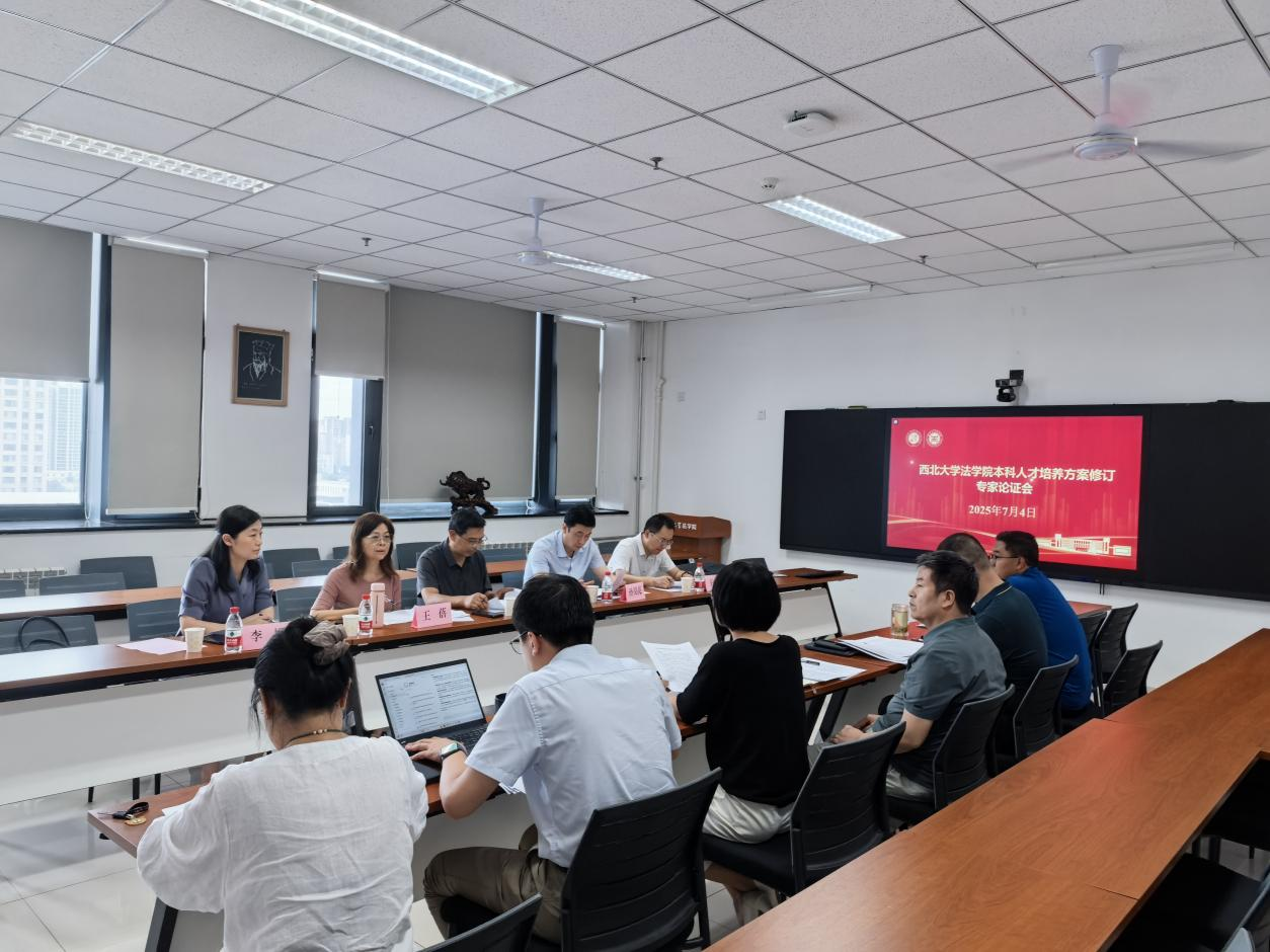 7月4日下午14时30分,学院特邀西北政法大学孙昊亮教授、西安交通大学王保民教授、西安财经大学王波教授、陕西师范大学王蓓教授、西北工业大学李娜教授组成专家论证组,全面论证新修订的本科专业人才培养方案。专家论证会由学院院长王思锋教授主持,并由崔玲玲副院长具体汇报本次修订工作的思路与内容,五位专家从学科发展前沿、社会需求变化、校际培养方案比较等维度,对培养目标定位、专业特色凝练、学分分配逻辑等核心内容进行了专业论证,特别就“人文素养的实现方案”“数字法学课程群建设”“涉外法治人才培养”“实务能力阶梯式培养”等创新设计提出了建设性意见。
