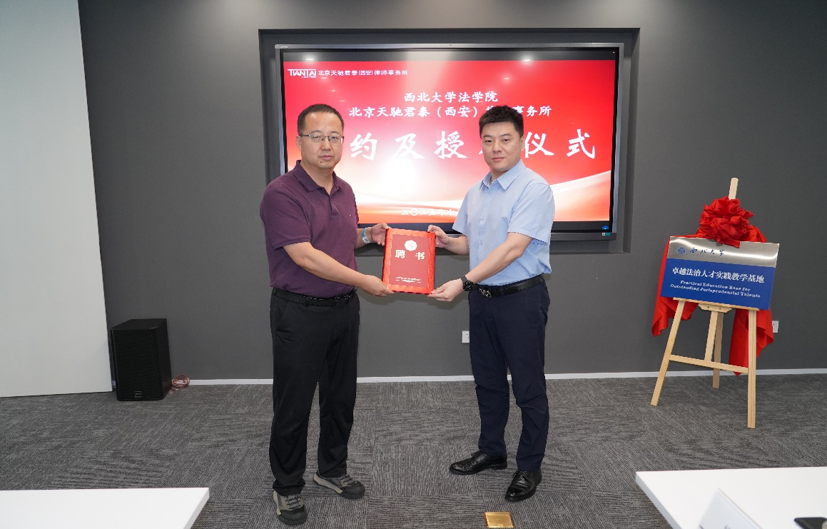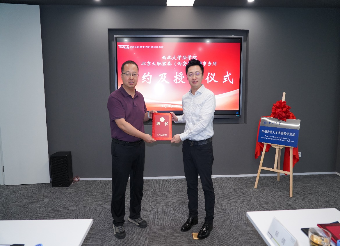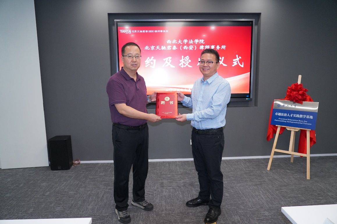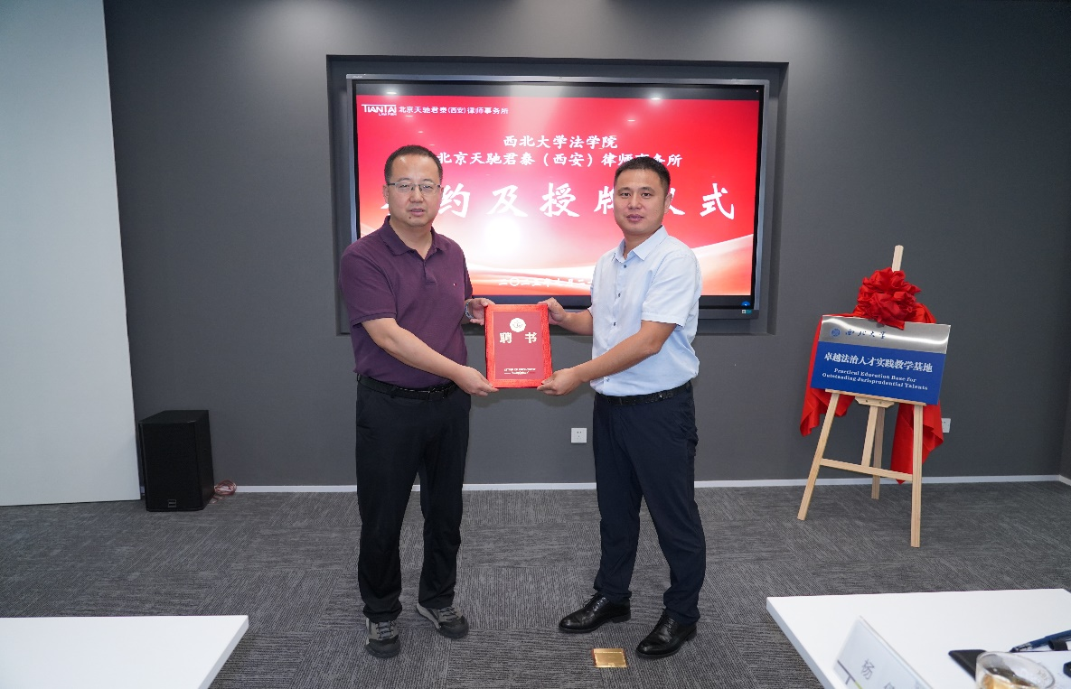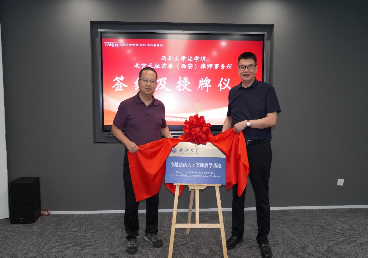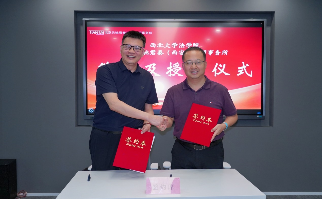 7月24日,学院与北京天驰君泰(西安)律师事务所在西安科创基金园签订全面合作协议。院长王思锋、副院长许博、民商法学教研部教师刘桢、办公室主任王哲、团委书记杨霁明,北京天驰君泰(西安)律师事务所主任王治平、管委会主任李树侠、高级合伙人杨帆、石晨、王靖,合伙人马丰华、魏婧,行政主管杨倩等共同参加签约仪式。
