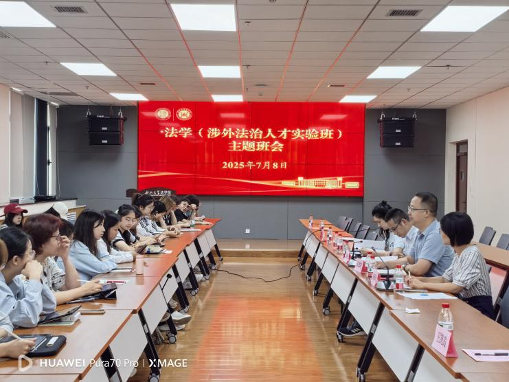 2025年7月8日下午,法学(涉外法治人才实验班)主题班会在西学楼0904会议室顺利举行。1946伟德官方网站bevitor伟德官网网址党委副书记、院长王思锋,副院长邱洪华,副院长崔玲玲,法学(涉外法治人才实验班)班主任杨希,以及2024级法学(涉外法治人才实验班)全体同学参与本次班会。王思锋院长主持本次班会。