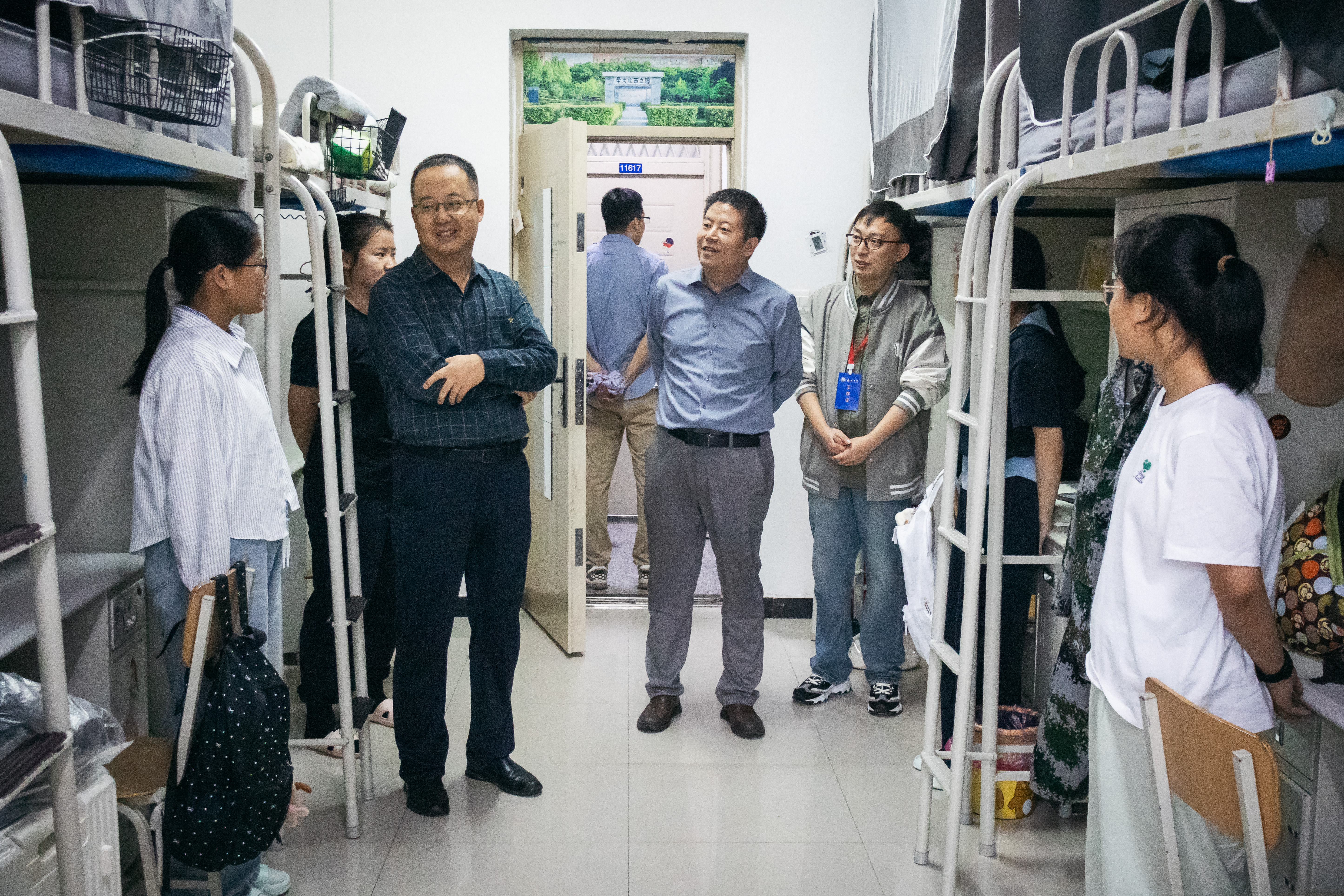 8月29日、30日下午4时许,为深入了解2025级硕士研究生、本科新生们的学习生活情况,由学院党委书记李一凡、院长王思锋带队,学院教师分组走访长安校区学生宿舍四号楼、七号楼、十八号楼和十九号楼及太白校区学生宿舍十一号楼、十二号楼看望慰问新同学。学院领导、老师与同学们深入交谈,亲切询问新生同学的入学感受及适应情况,耐心解答了同学们关于专业学习、校园生活等方面的问题,让远离家乡的学子感受到学院的温暖。学院领导、老师鼓励同学们珍惜大学时光、敢于挑战自我,既要扎实筑牢法学专业基础,也要积极参与社会实践活动,在探索中拓宽视野、增长见识,并勉励各位新同学要尽快完成角色转变,做好学业生涯规划,相互帮助,共同进步,在1946伟德官方网站bevitor伟德官网网址收获难忘的校园时光。