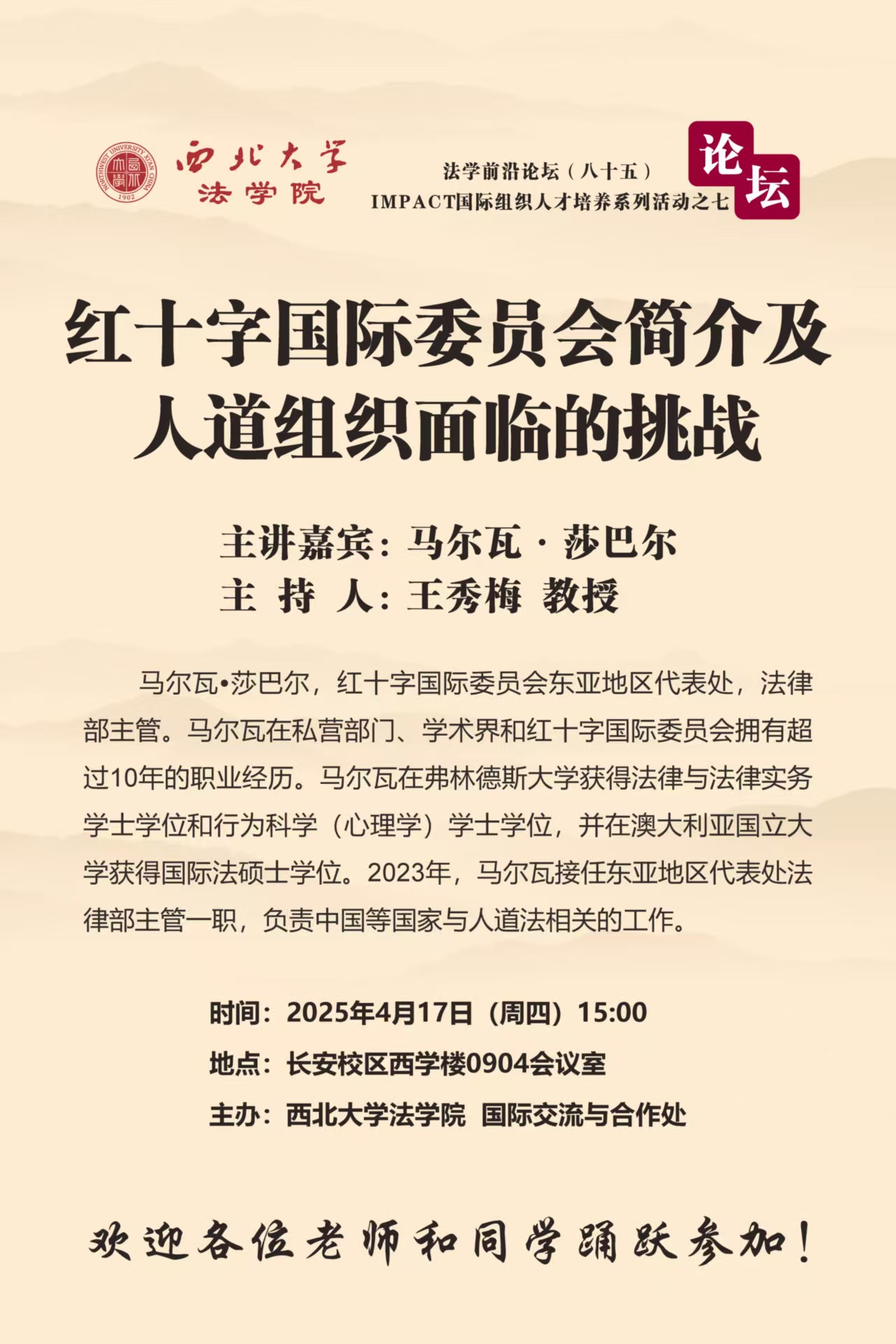法学前沿论坛(八十五)——红十字国际委员会简介及人道组织面临的挑战