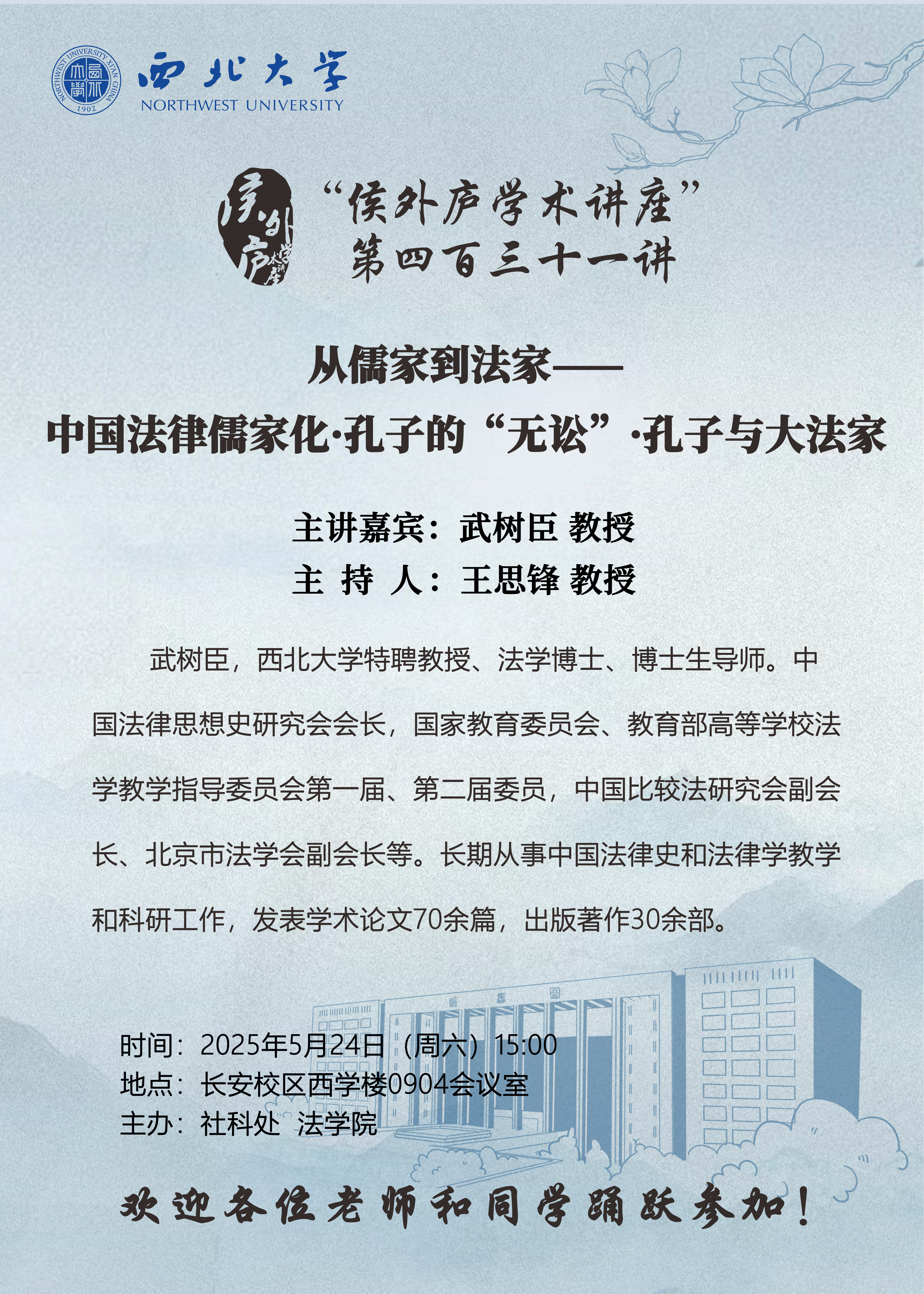 “侯外庐学术讲座”(四百三十一)——从儒家到法家——中国法律儒家化 孔子的“无讼”孔子与大法家