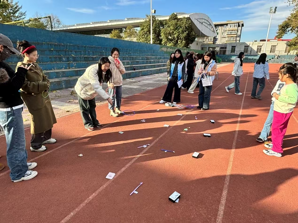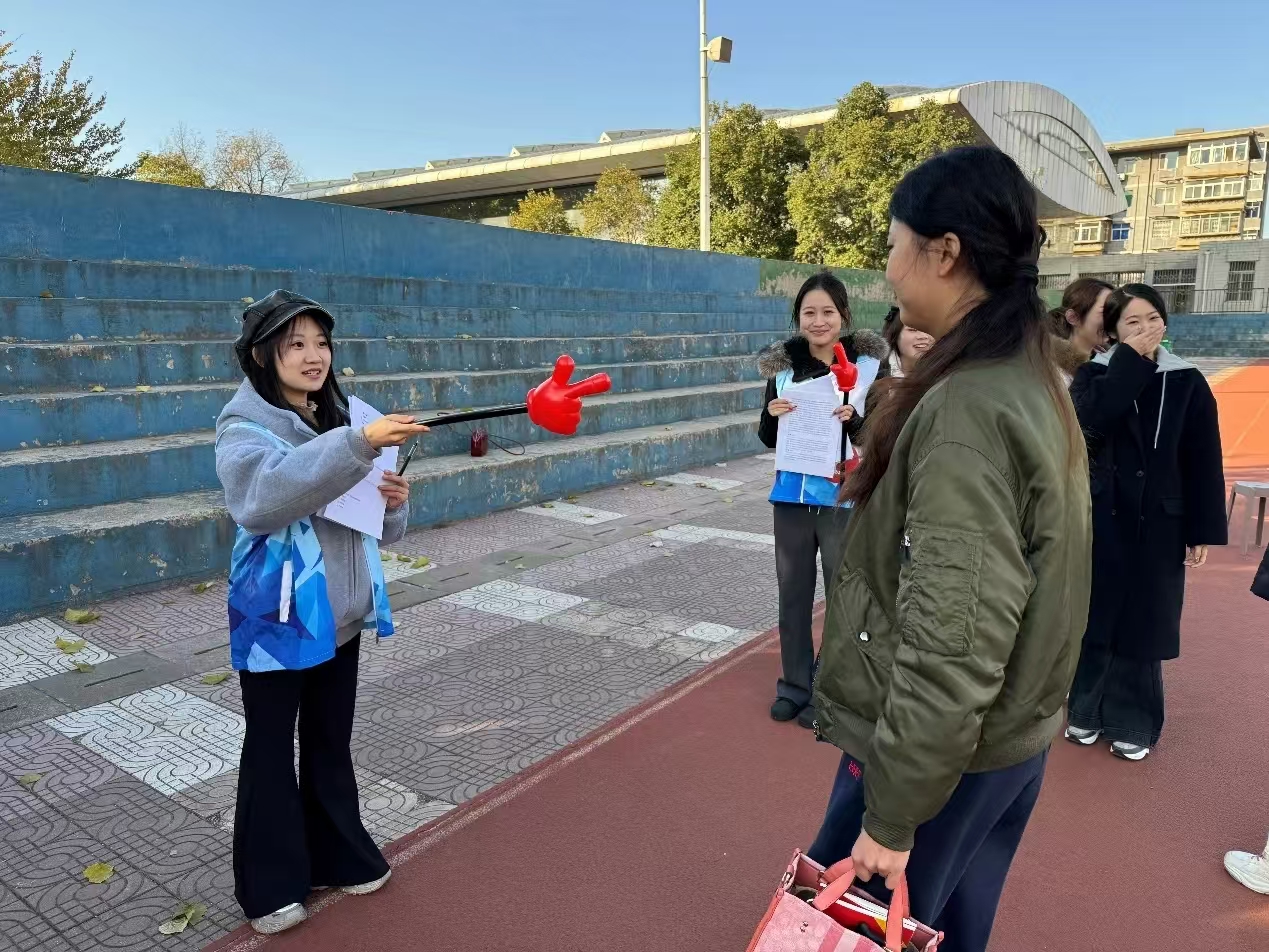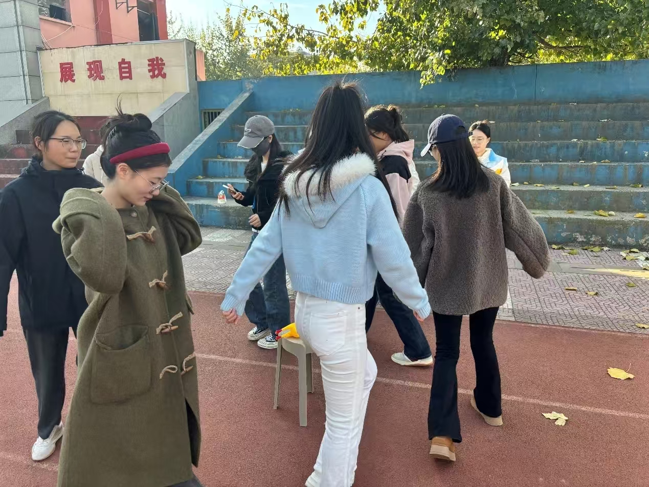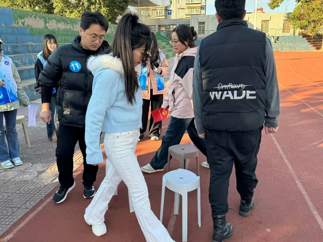 在 “齐目共聚”这一场视觉与反应速度的较量中,参与的同学需随着志愿者手势的指向变换迅速转动头部,若志愿者手势完全一致则被淘汰出局。这是一场对同学们观察力与反应能力的考验,同时也在轻松愉快的氛围中增进了彼此间的默契。