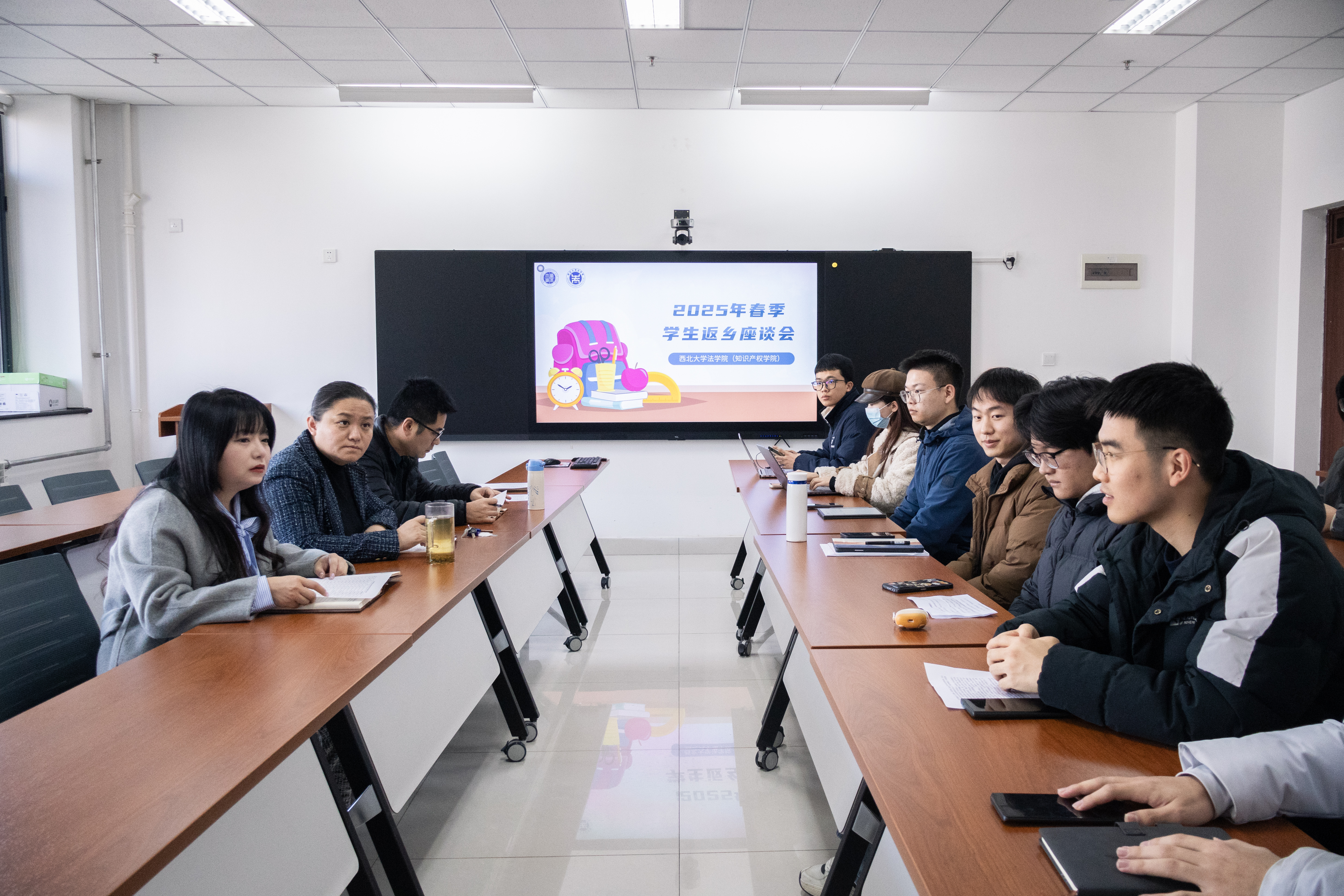 座谈会上,同学们围绕寒假的所见所感,分别从家乡变化、校园建设以及个人成长等角度展开了讨论。大家结合自身实践,从参与bevitor伟德官网网址司法ai训练营,律所、法律援助中和政府部门实习,社区志愿服务,返校宣讲等活动经历,与各位老师、同学分享自己的感悟与成长。同时就学校与学院的未来发展提出部分建议与意见。与会老师听取了每一位同学的发言,针对同学们所提的具体问题进行了细致的回应,并结合工作与生活实际和学生进行交流。