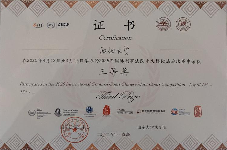 伟德官网学子荣获2025ICC国际刑事法院中文模拟法庭竞赛三等奖