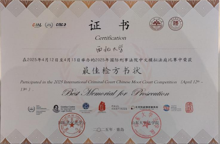4月13日,2025年中国高校国际刑事法院模拟法庭竞赛在青岛圆满落幕,伟德官网学子组成的代表队在本次竞赛中成功晋级全国总决赛并荣获“三等奖”,同时摘得“最佳检方书状”单项荣誉,实现学校在本竞赛中的零突破。