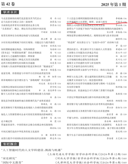 近日,伟德官网吕康宁老师撰写的论文“法律规则的立法逻辑:解析、证成与相变”,被《人大复印资料·法理学法史学》2025年第4期全文转载、《高等学校文科学术文摘》2025年第1期学术卡片转摘。该文原发表在《暨南学报(哲学社会科学版)》2024年第11期。