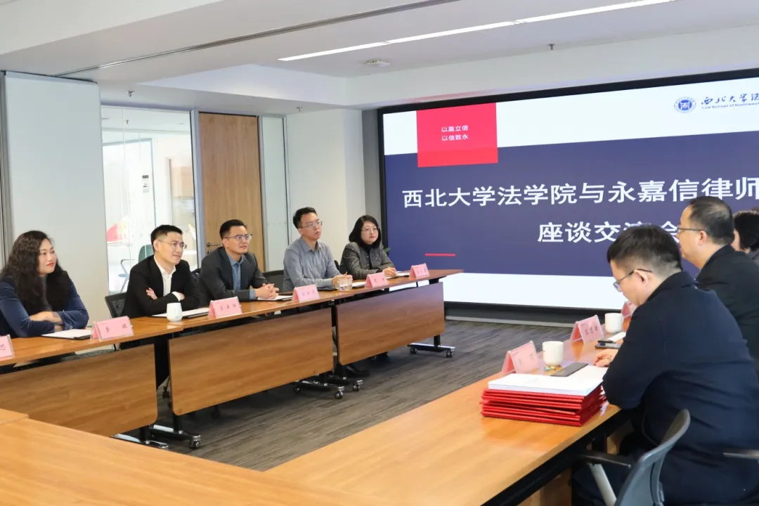为助力培养兼具理论素养和实践能力的高素质法律人才,为法学教育注入更多实务资源。202512日,1946伟德官方网站bevitor伟德官网网址院长王思锋教授、研究生办公室主任田红梅老师、科研秘书焦琰老师、研究生秘书丁天立老师、刘桢老师一行到访永嘉信律师事务所,双方共同开展课程共建座谈会。永嘉信党委副书记、管委会委员、高级合伙人吉泽伟高级合伙人李飒,律师段振东、贺涛、安富丽等参与交流座谈。