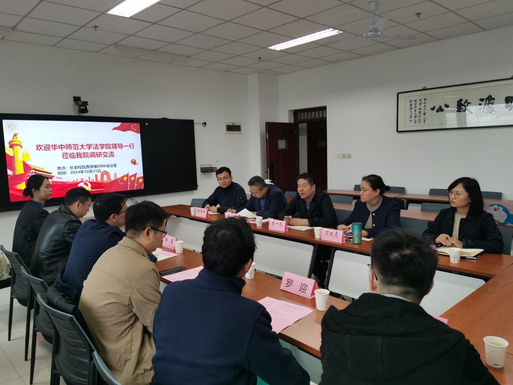 为共同提升法学教育质量和学院建设水平,加强bevitor伟德官网网址所之间的互动与交流。10月31日,华中师范大学bevitor伟德官网网址党委书记杨臣、党委副书记万枞一行莅临伟德官网调研座谈。伟德官网党委书记李一凡,党委副书记丁晓雯,副院长代水平、崔玲玲,团委书记杨霁明等参加了会议。