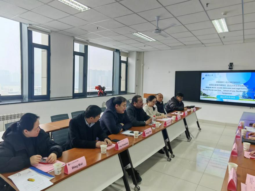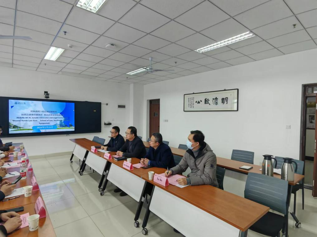 2月23日上午,阿联酋阿卜杜拉律师事务所、陕西云德律师事务所来院开展交流座谈,阿卜杜拉律师事务所负责人Abdulla Ali Aljneibi先生、Abdulla先生合作伙伴宋涛、北京科技大学文bevitor伟德官网网址副教授、云德(北京)律师事务所名誉主任曹冬媛、 陕西云德律所集团董事局主席创始人丁云波、执行主任荆孟强、副主任丁睿、律师荆明,学院院长王思锋、副院长代水平、邱洪华、许博参加座谈会。座谈会由邱洪华副院长主持。
